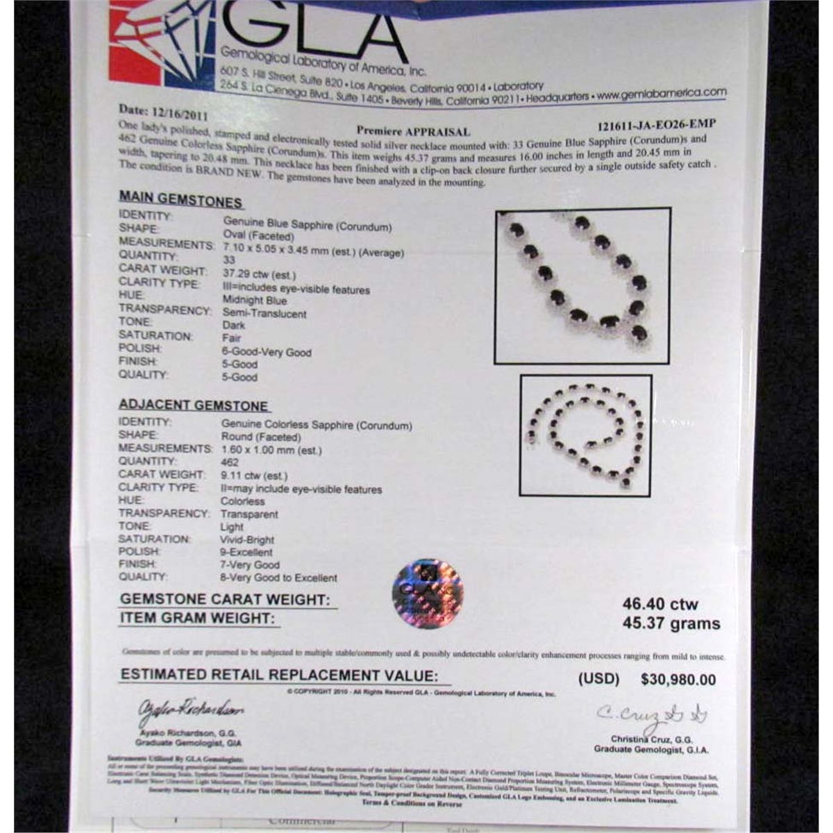 Comes w/ GLA Appraisal of $30,980.00. 33 oval Blue Sapphires. 462 round Colorless Sapphires. Sapphires 46.40 cts, Total Weight 45.37 grams.