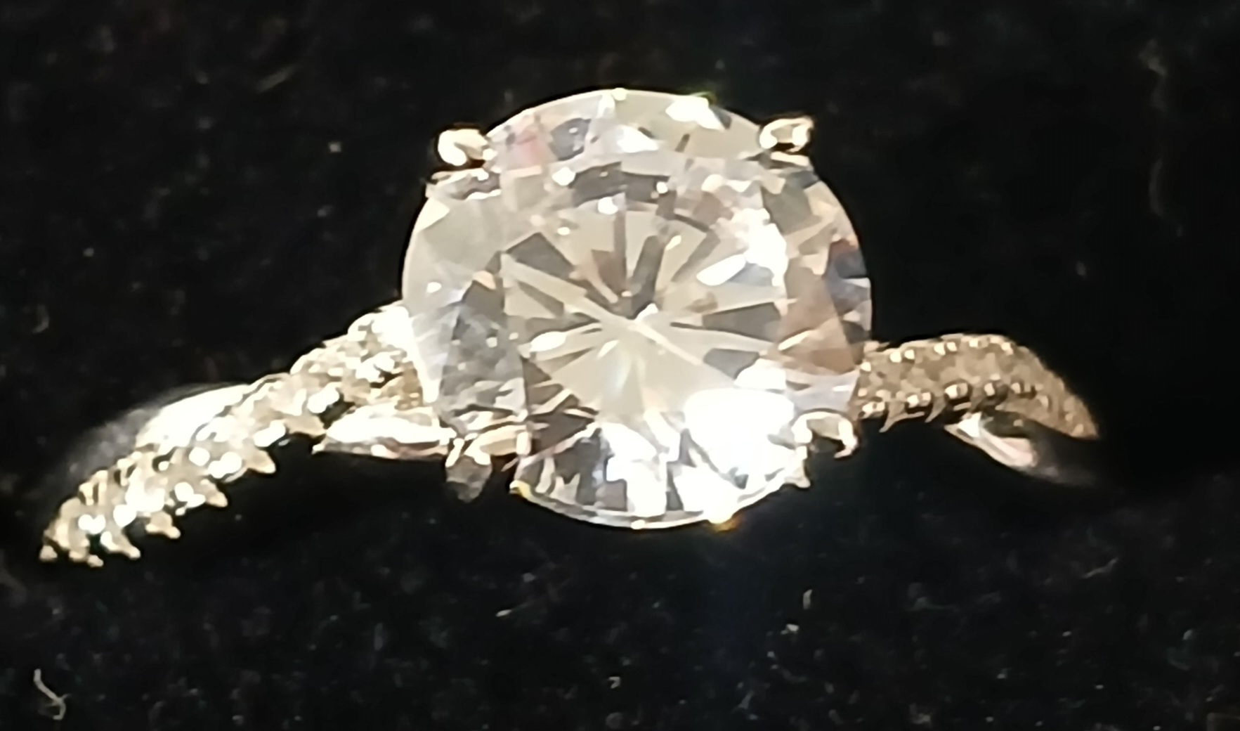 NOTE: SIZE 7 - 1.5CT DIAMOND - 3.10G - MOUNTED IN 925 STERLING SILVER W/ WHITE GOLD OVERLAY