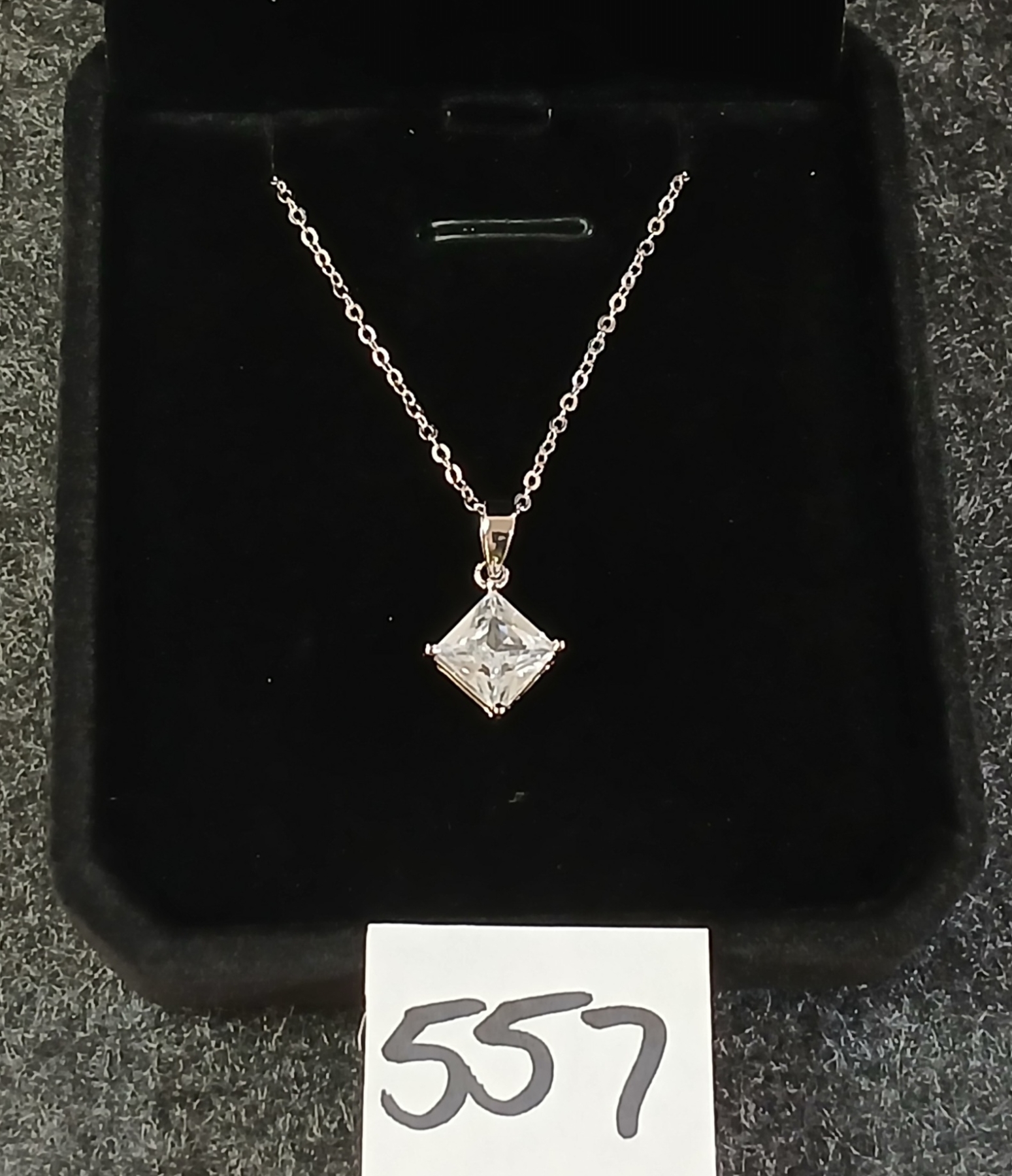 NOTE: ADJUSTABLE 16-18IN - STERLING W/ WHITE GOLD OVERLAY - 2.0CT STONE - 2.76G TOTAL WEIGHT