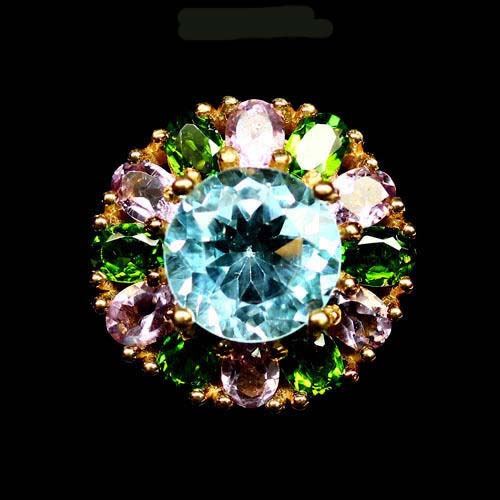 STERLING SILVER SKY BLUE TOPAZ & AMETHYST LADIES RING - SIZE 9