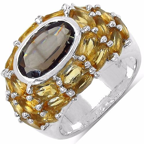 STERLING SILVER SMOKY QUARTZ AND CITRINE RING