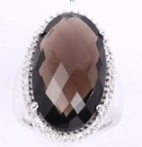 STERLING SILVER SMOKY QUARTZ BRIOLITE RING