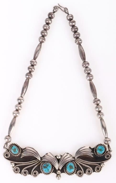 Sterling silver southwest-style turquoise ladies owl necklace.