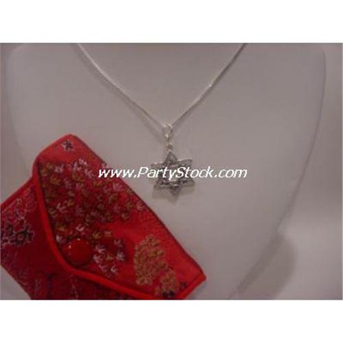 [137261816] Filigree Double Star of David Charm is fashioned of Solid Sterling Silver. It is strung on an 18 inch, Solid Sterling Silver Magic Snake chain which looks like liquid silver on the skin. Stunning!<p> Retail Value: $29.95<P> Measures: Star Pendant measures 5/8 Inch Square <p> This is a brand new item. <p> Please note: our merchandise is guaranteed 100% to your satisfaction. If you don't LOVE this item, simply return it for a complete refund of your purchase price. Our feedback is 100% positive, so you can shop with confidence, knowing that your satisfaction is our primary concern. <p> Please click on the "Calculate Shipping" button below to see your actual shipping charges. Insurance is included in our shipping charges.