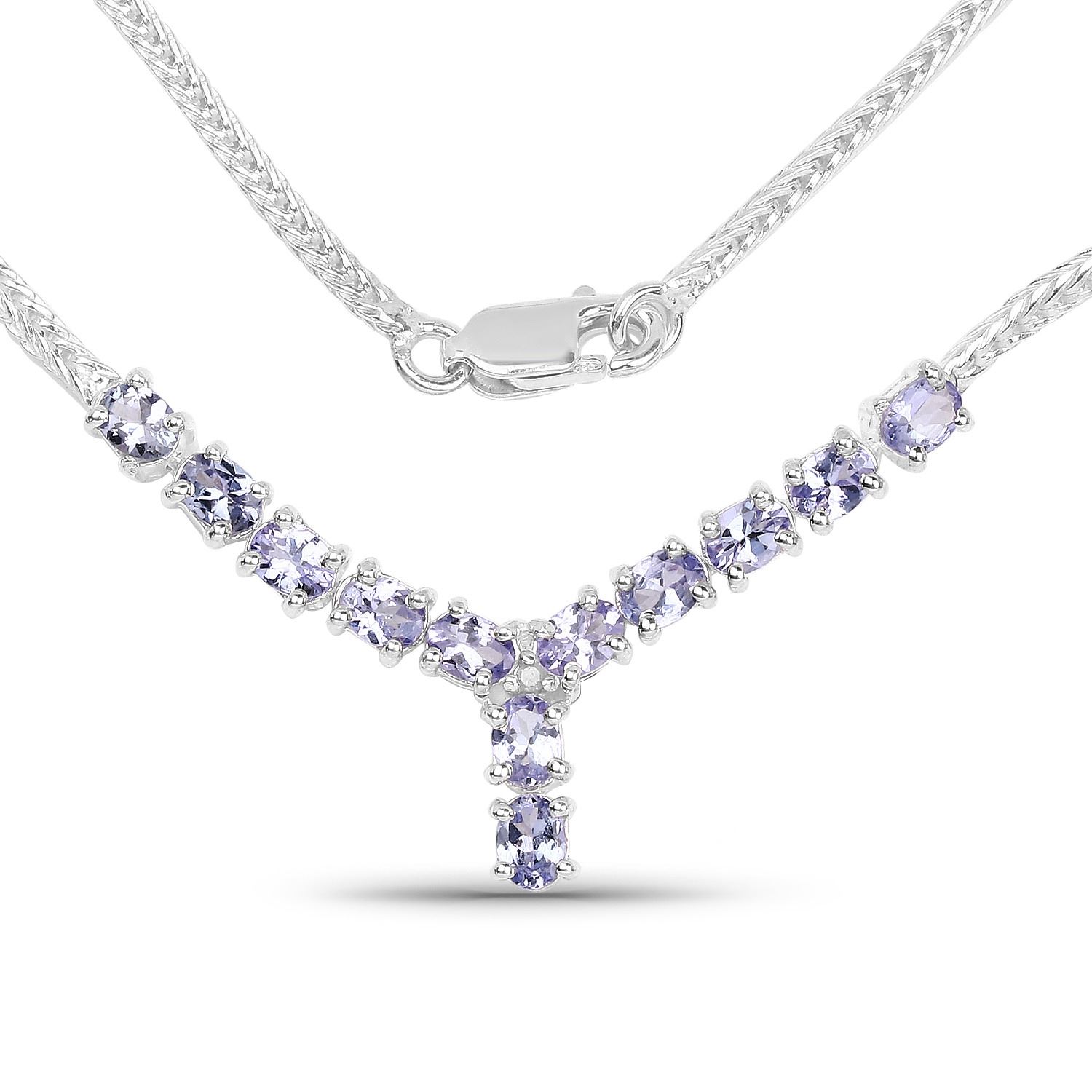 STERLING SILVER TANZANITE AND DIAMOND NECKLACE