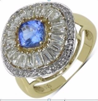 Gemstone Description: Tanzanite ( A-A+ ) Cushion 6.00mm - 1Pc + White Topaz Tapper Baguette 3.00x2.00x1.30mm - 20Pcs + White Topaz Round 0.90mm - 44Pcs ( White Pan Rhodium )