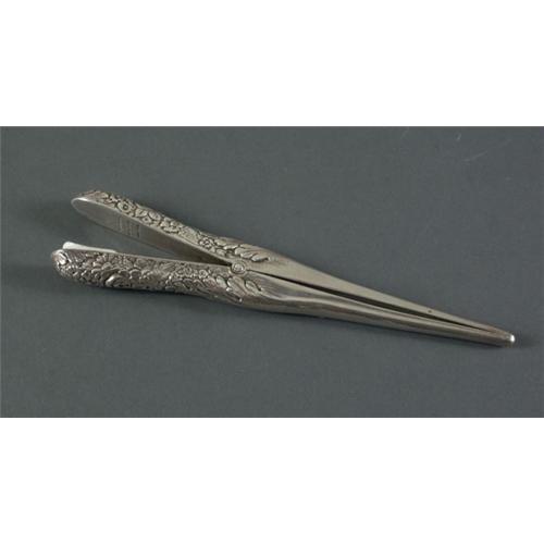 STERLING: A Tiffany and Co. sterling silver glove stretcher, marked ''Tiffany and Co., 8261M4, Sterling Silver, Patent, June 28 (?), 1875, ornate repousse floral pattern, 7 1/2'', 2.66 ozt, slight denting and tarnish marks at tip.