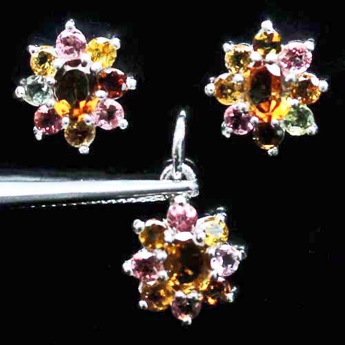 STERLING SILVER TOURMALINE EARRINGS & PENDANT SET