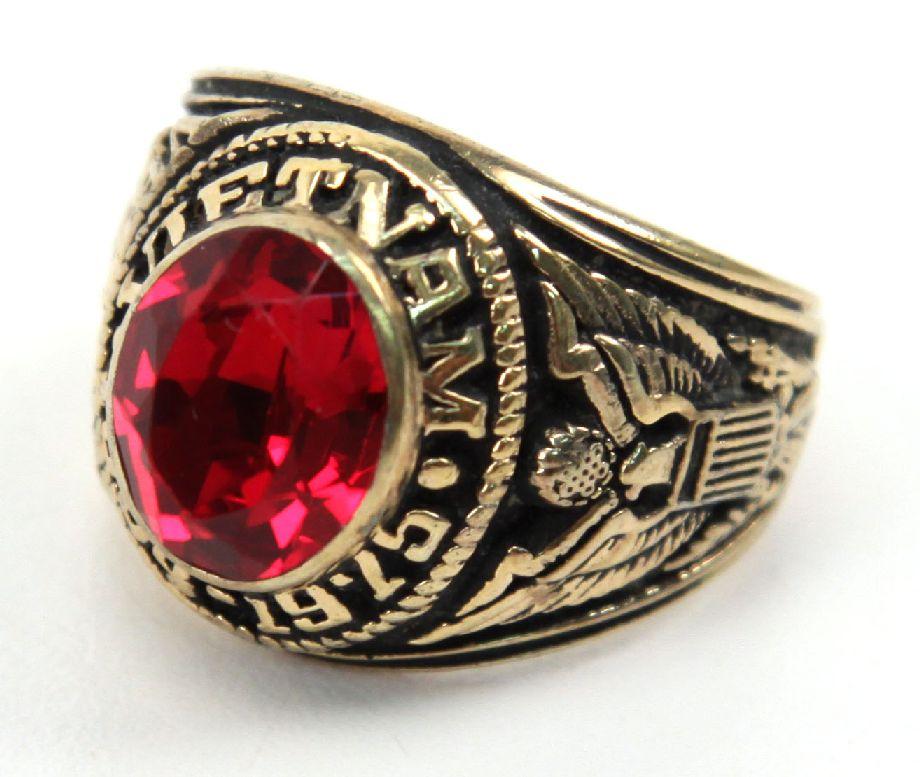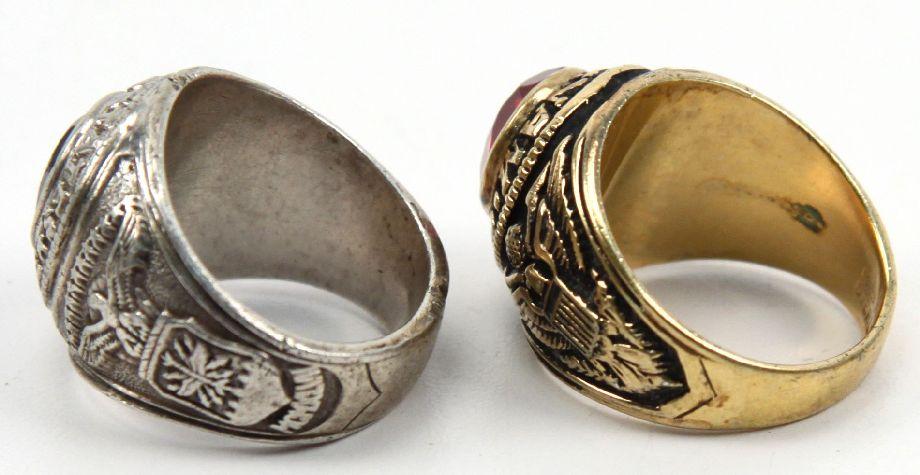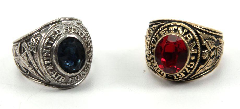 A pair of sterling veterans rings one a USAF ring dated 1947 in roman numerals with a early jet image a size 10, the second a Vietnam service veteran ring 1964 to 1975 in sterling as well and a size 10.5, total wt 41grams