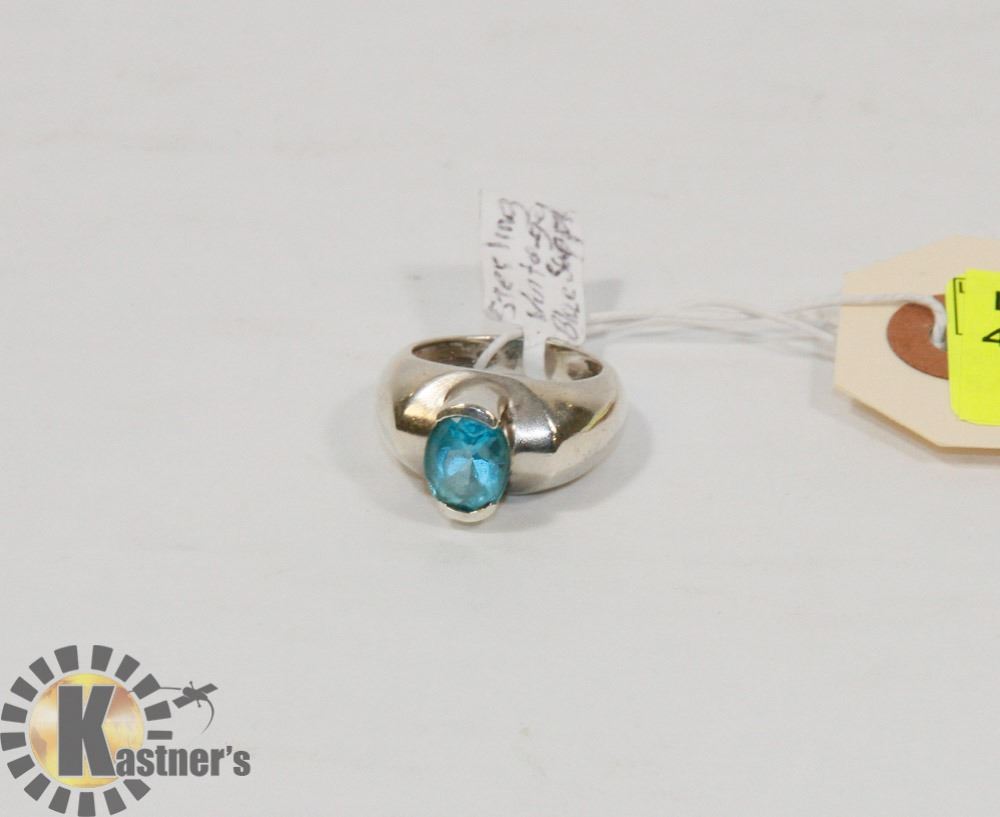 STERLING SILVER VINTAGE BLUE SAPPHIRE RING SIZE 7.
