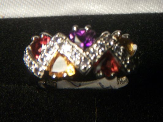 STERLING SILVER W/ TANZANITE, AMETHYST, GARNET CITRINE RING SIZE 8