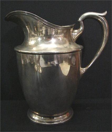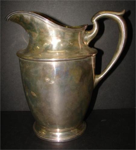 STERLING SILVER WATER PITCHER. Marked on bottom with hallmarks and “Sterling/1382”. 9.25” H