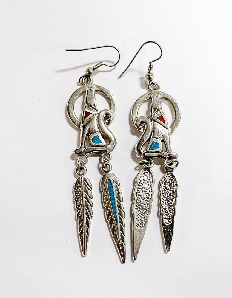 STERLING SILVER WOLF EARRINGS WITH TURQOUISE