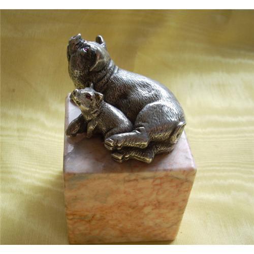 BURTON BROOK FARM ANTIQUES presents a sterling silver seated sow with her baby piglet nestled at her side. Both pigs have garnet eyes and are beautifully modeled by a master silversmith. This is a one-of-a-kind masterpiece. The pigs are mounted on a marble base. The base is 2 3/8" tall ... the sculpture is 4" tall with pigs on base. More images available of this wonderful sculpture.