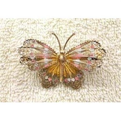 <tr><td>Title: STERLING SPUN SILVER ENAMELED GOLD BUTTERFLY</td></tr>