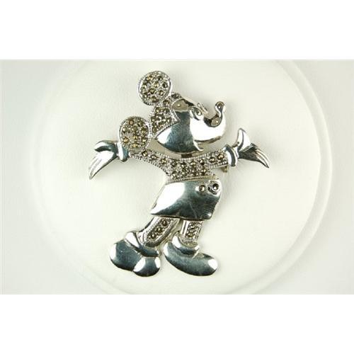 It is an all STERLING Silver pin of Mickey Mouse - Mickey is set with Marcasite accents, and he can also be worn as a pendant. Mickey measures 2" in height and his body and legs move!