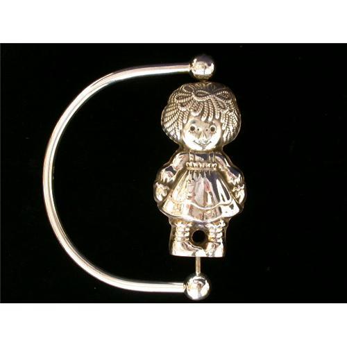 If you collect RAGGEDY ANN Memorabilia, you will love this wonderful Rattle from my collection.It is a STERLING SILVER Baby Rattle of 'Raggedy Ann'. The Rattle measures 3 1/4" from top to bottom - just right for the handgrip of a little one. And, Raggedy Ann spins around when you shake the Rattle. It is in 'Mint' condition, and would make a superb gift.