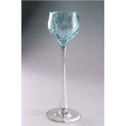 ÖSTERREICH Weinglas, farbloses Glas, partiell hellblau überfangen. Tellerfuß, schlichter Stiel, Kuppa mit kugeloptischem Dekor. H.: 23,5 cm. Unbezeichnet. Wohl Kolomann Moser. Um 1904