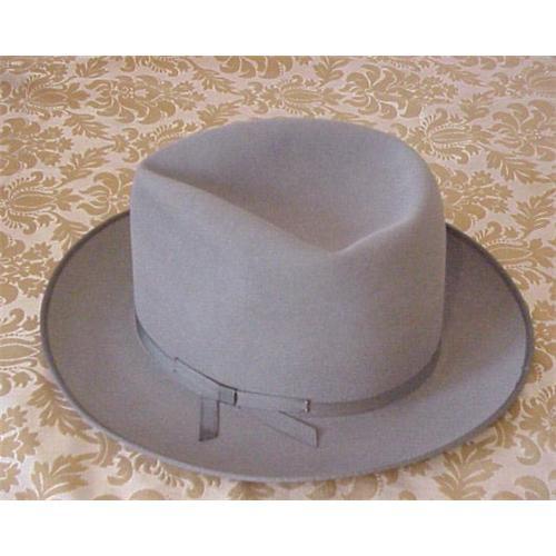 Quality older Vintage Hat signed ROYAL STETSON Open Road - The color is elegant warm medium grey color - Brim size is 2 1/2" inches.and on inside black sweat band - This is Size 7 Hat is in excellent, NEVER used condition. No moth nibbles. It comes in a black cardboard Hat Box.
