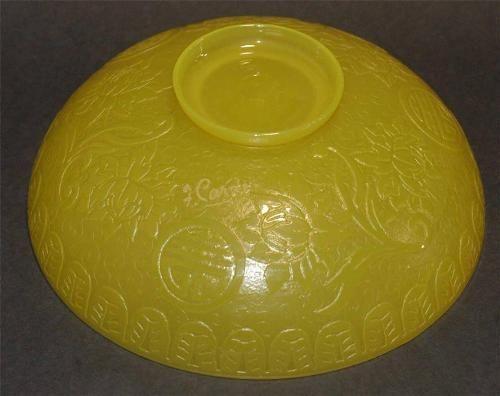 STEUBEN ACID CUT FOOTED BOWL, yellow jade, 8" diameter, 3" high, condition: excellent- no damage or restoration.
