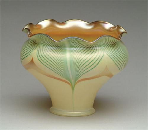 STEUBEN ART GLASS SHADE. Same as the previous lot on yellow opal ground. SIZE: 4-1/2 in. t. CONDITION: Very good to excellent. 5-61615