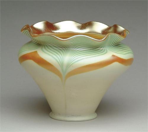 STEUBEN ART GLASS SHADE. Same as the previous lot on a creamy opal ground. Unsigned. SIZE: 4-1/4 in. t. CONDITION: Very good to excellent. 5-61616