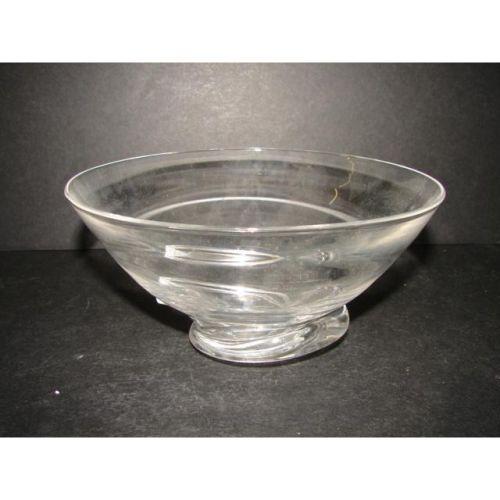 STEUBEN GLASS BOWL. Has applied glass swirl decoration around base. Marked on bottom “Steuben”. Also marked on bottom “ENC”. 3.75” H, 7.25” Dia. From the Estate of Governor Elbert N. Carvel (Governor of Delaware 1949-1953, 1961-1965) & Mrs. Ann Valliant Carvel.