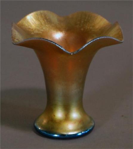 STEUBEN GOLD IRRIDESCENT VASE, 5 1/2" high with ruffled rim, early 20th century, condition: 1cm popped bubble at rim, PACKING AND SHIPPING (excluding insurance) $30,