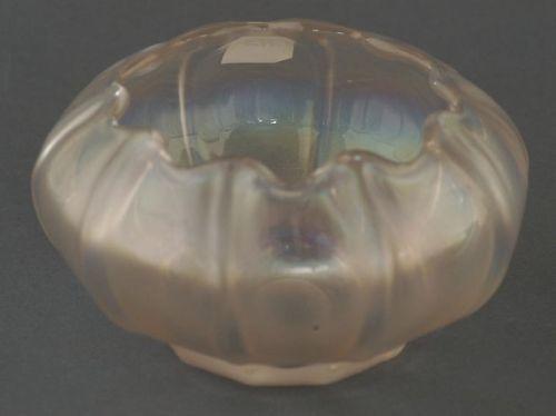 STEUBEN VERRE DE SOIE GLASS BOWL ribbed incurving walls, 3" high