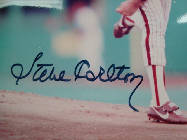 STEVE CARLTON & MIKE SCHMIDT Signed Color Photos: Two Phillies Hall of Famer Players Steve Carlton & 3D Baseman Mike Schmidt. Framed and Matted Together with Gold Metal Frame. Glass Missing. (75-150)