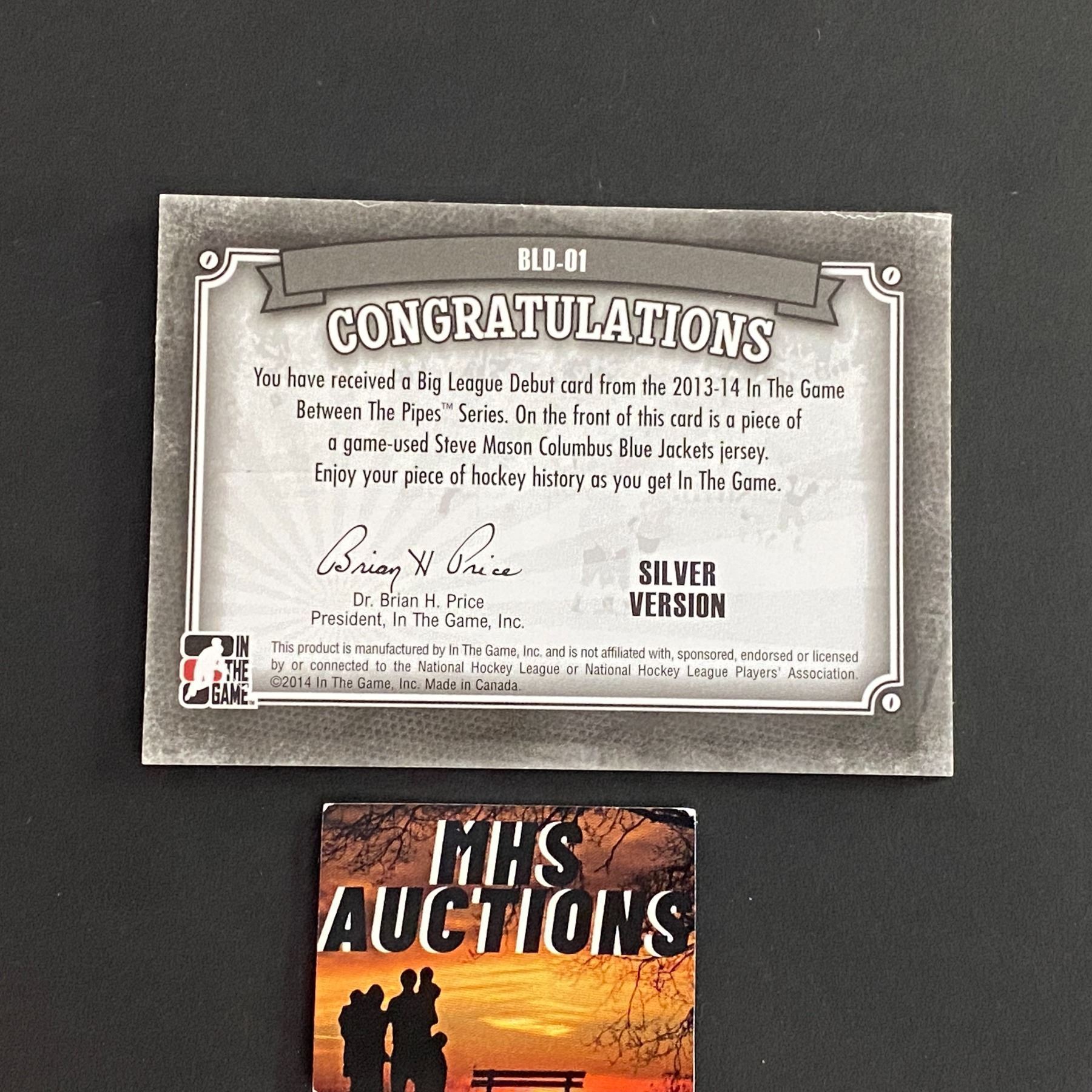 STEVE MASON 2014 IN THE GAME PATCH HOCKEY CARD SILVER VERSION