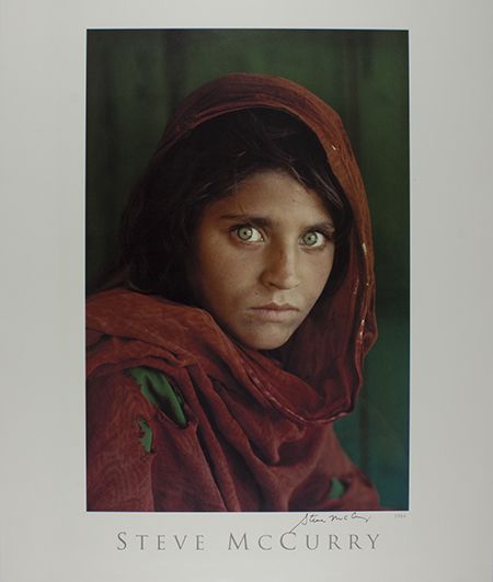 (b. 1950) American photographer perhaps best remembered for his haunting image "Afghan Girl" which appeared on the cover of National Geographic in June, 1985. A great signed poster, his most famous image "Afghan Girl" measuring 20" x 23", boldly signed. Fine condition, ideal for display.
