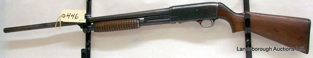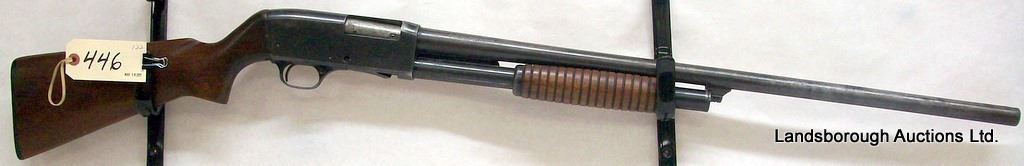 NON-RESTRICTED, PUMP ACTION, 12GA X 2 3/4", 28" BARREL WITH FIXED FULL CHOKE, SN NONE. WOOD THREE SMALL CRACKS BEHIND RECEIVER, BLUING IS BROWN AND WORN, BORE PITTED. MISSING BOLT IN RECEIVER, DOESN'T ALWAYS LOCK UP.