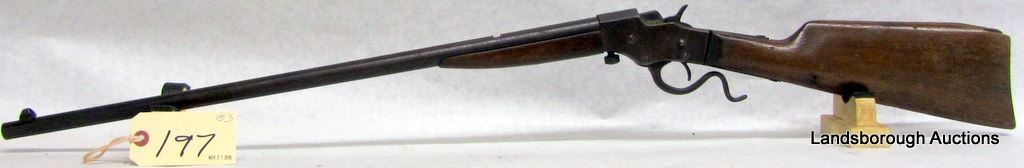 NON-RESTRICTED, SINGLE SHOT, 25 STEVENS, 24" BARREL, SN NONE. WOOD HAS LARGE PIECE MISSING AT HEEL, BLUING IS BROWN, BORE PITTED WITH PROMINENT RIFLING. MISSING REAR SIGHT.