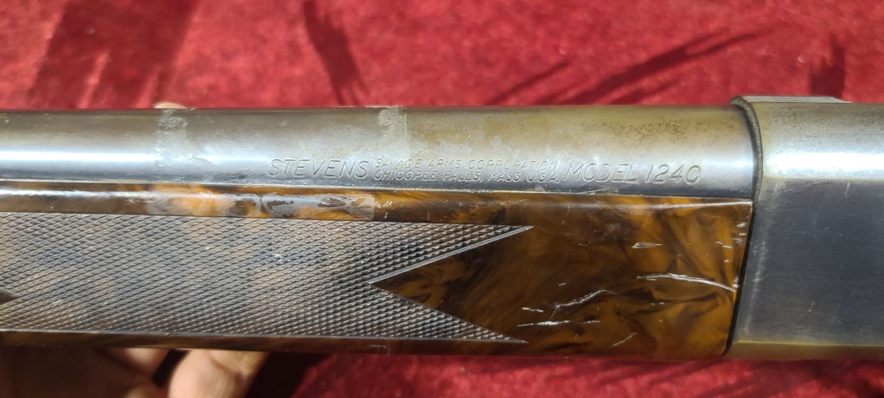 STEVENS MODEL 124C 12GA 2 3/4" BOLT ACTION SHOTGUN - STOCK IS CRACKED AND LOSE - ACTION WORKS YET IS STICKY