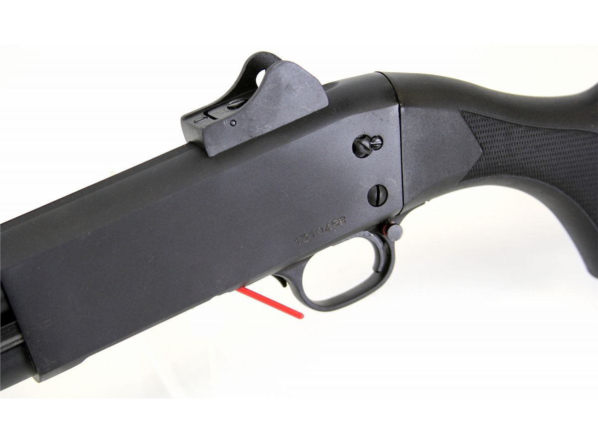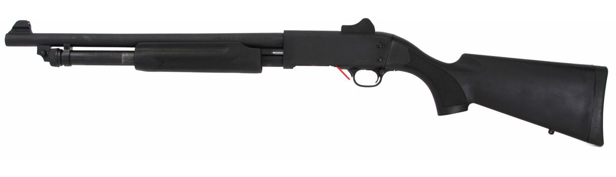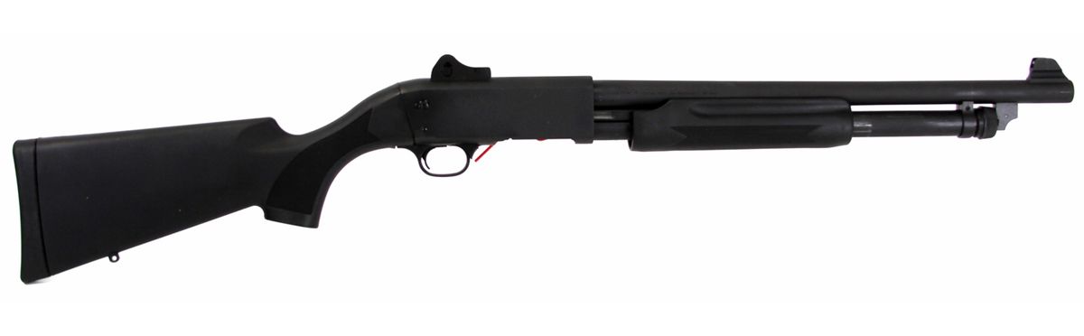 STEVENS MODEL 350 TACTICAL 12 GAUGE SHOTGUN NIB Stevens Model 350 tactical 12 gauge shotgun. 18 inch barrel chambered for 2 3/4 & 3 inch shells. Matte black finish, with black synthetic sock, and ghost ring sights. Type: Shotgun Manufacturer: Stevens Model: 350 Caliber / Gauge: 12 gauge Barrel Length: 18 inches Serial Number: 131048R Condition: As new in original box.
