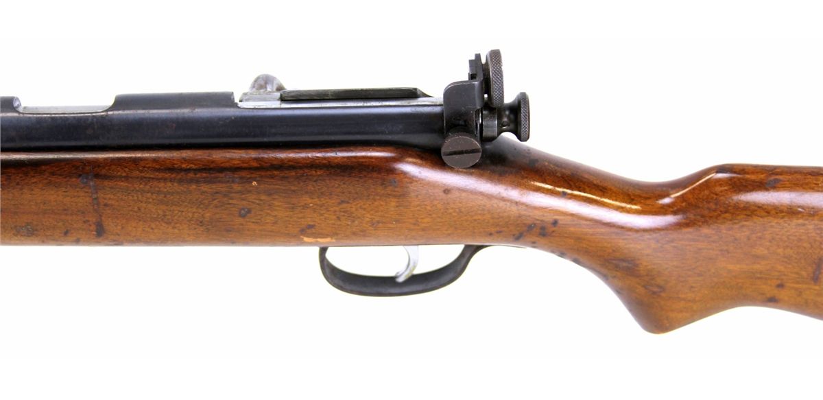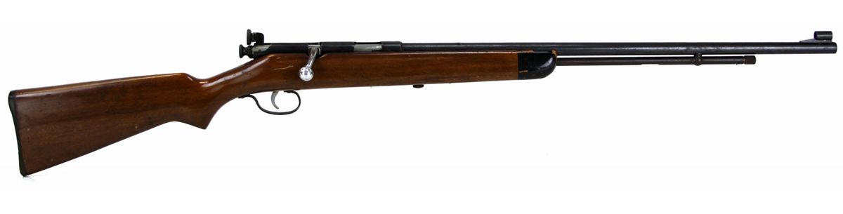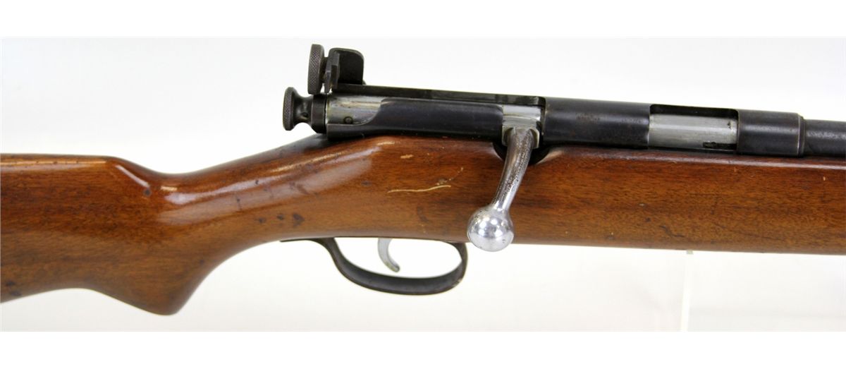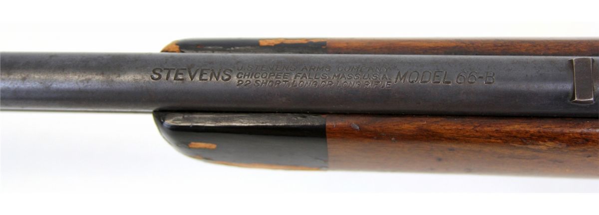 STEVENS MODEL 66B RIFLE IN .22 S-L-L Stevens Model 66-B rifle. Bolt action, chambered for .22 Short, Long, or Long Rifle, with tube feed magazine, and aperture sight. Type: Rifle-Bolt Manufacturer: Stevens Model: 66-B Caliber / Gauge: .22 S-L-LR Barrel Length: 23 Inches Serial Number: None Condition: Bore is good, bluing about 65%, with some rust spotting. Stock shows scratches and field wear, but no cracks.