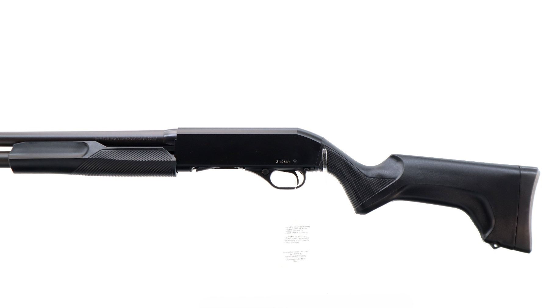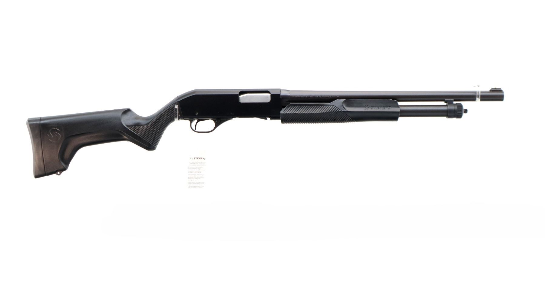 Main Description: Brass bead with ramp, Parkerized round barrel, black alloy receiver drilled and tapped with plug screws installed. Two piece black synthetic stocks, grooved extended forearm and pistol grip, black rubber recoil pad, swivel studs, 3/4 length magtube, retains factory hang tag.