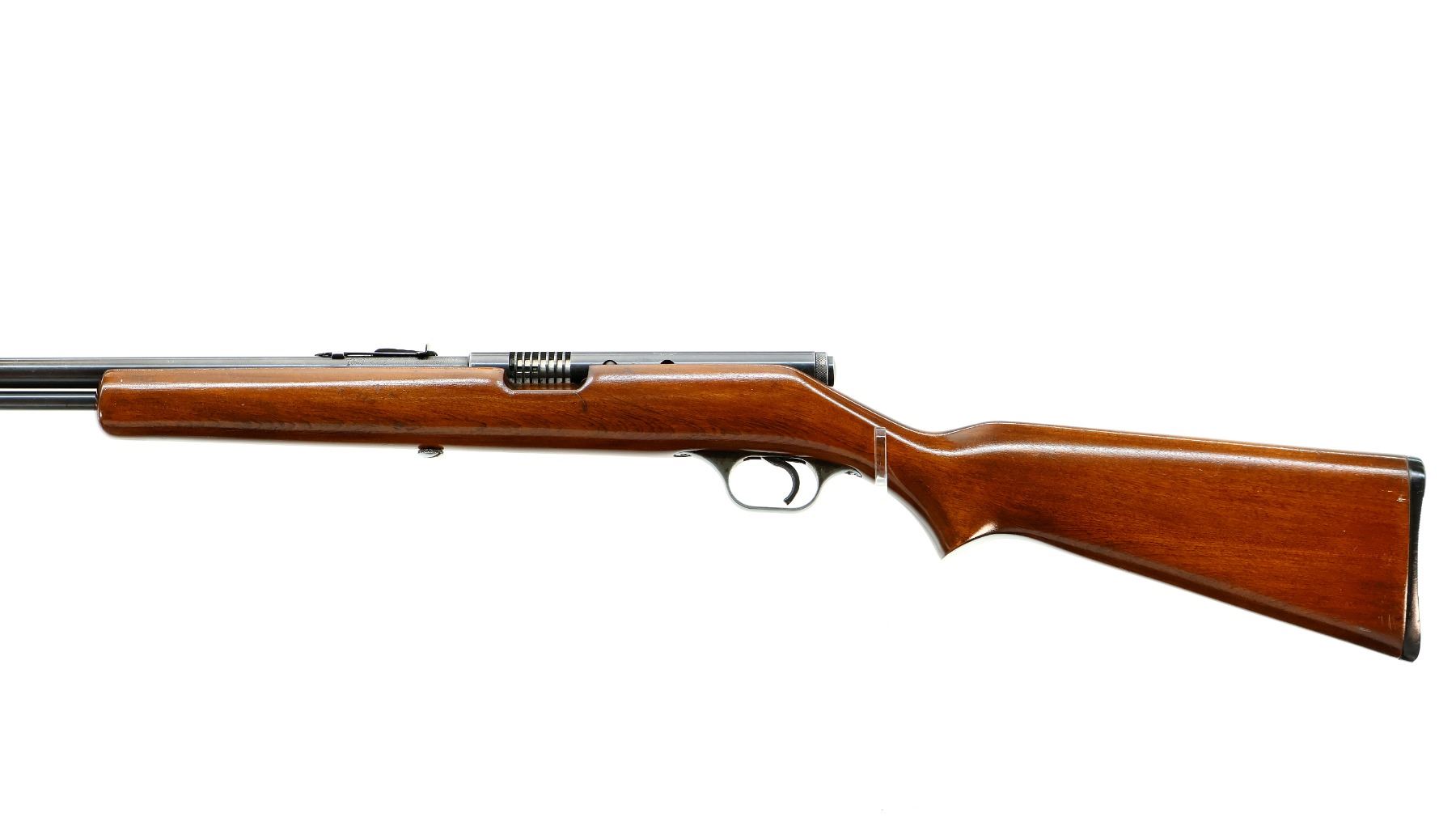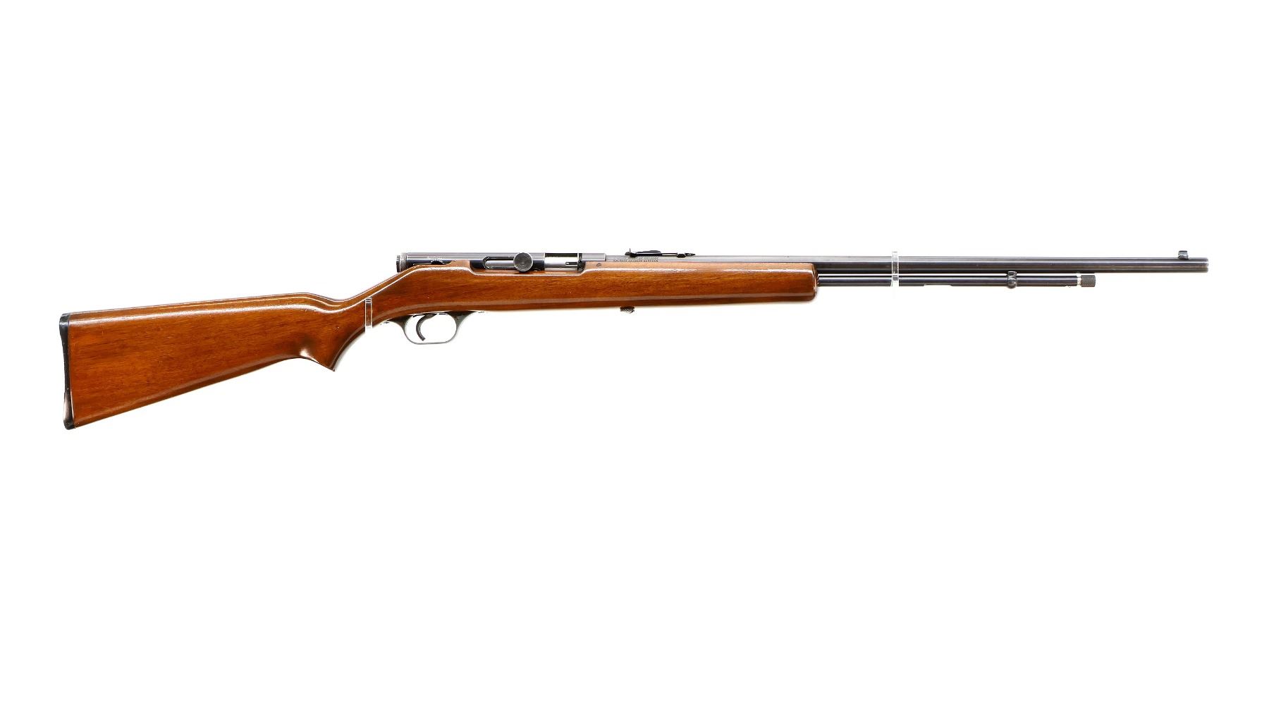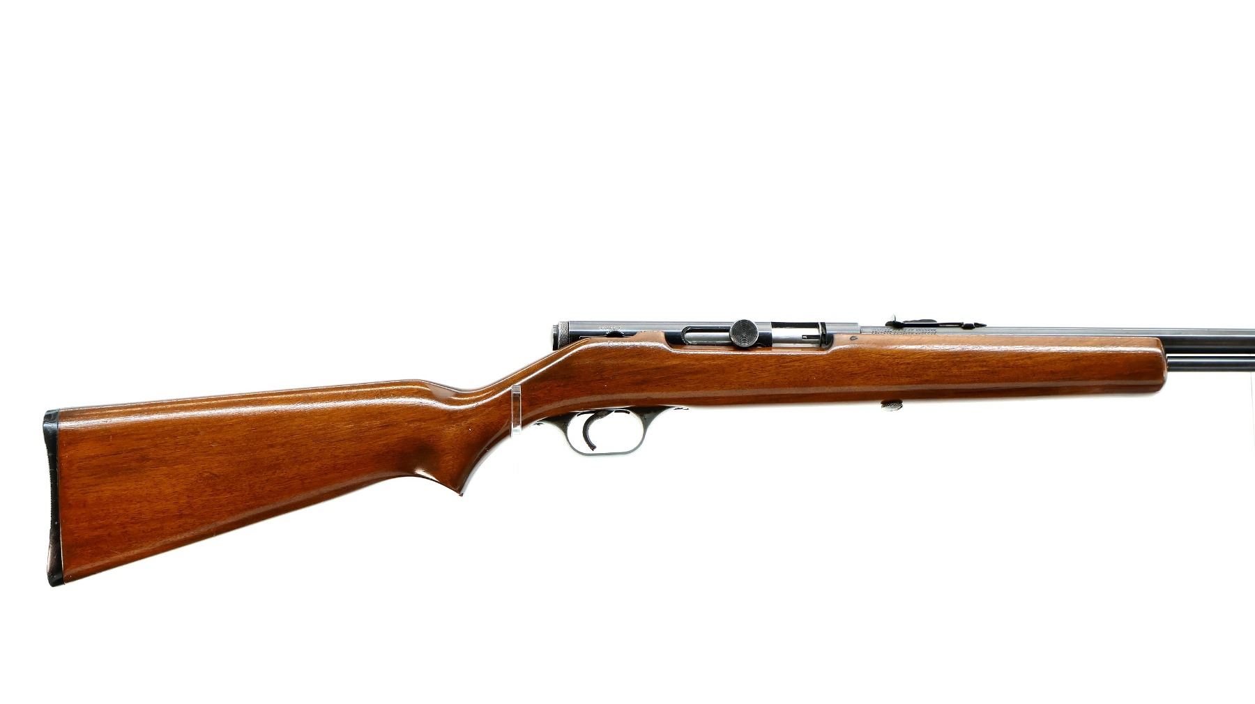 Main Description: Blade front sight, adjustable u notched rear sight, blued finish, grooved bolt knob. One piece wood stock, pistol grip, grooved black polymer butt plate