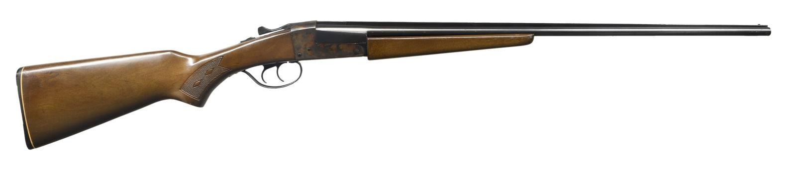 Cal. .410 2 1/2" or 3". S# D412599. Bbl 26". Top of left barrel is stamped "STEVENS/ SAVAGE ARMS" followed stamp stampings stipulating the model and caliber designations. Case color hardened frame with blued barrels and black anodized aluminum trigger guard. Lightly checkered wood buttstock and forend. Solid serrated rib with aluminum bead front sight. CONDITION: receiver retains strong case coloring, exhibiting a layer of what appears to be hardened factory grease overall. Barrels retain the majority of their factory blue finish, exhibiting some light wear, a few superficial handling marks, as well as scattered spots of mild surface oxidation overall. Mirror bores. Wood furniture shows some scattered marks from handling and storage, but otherwise is good. (23-2288/MLW). CURIO. $400-600.