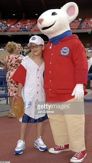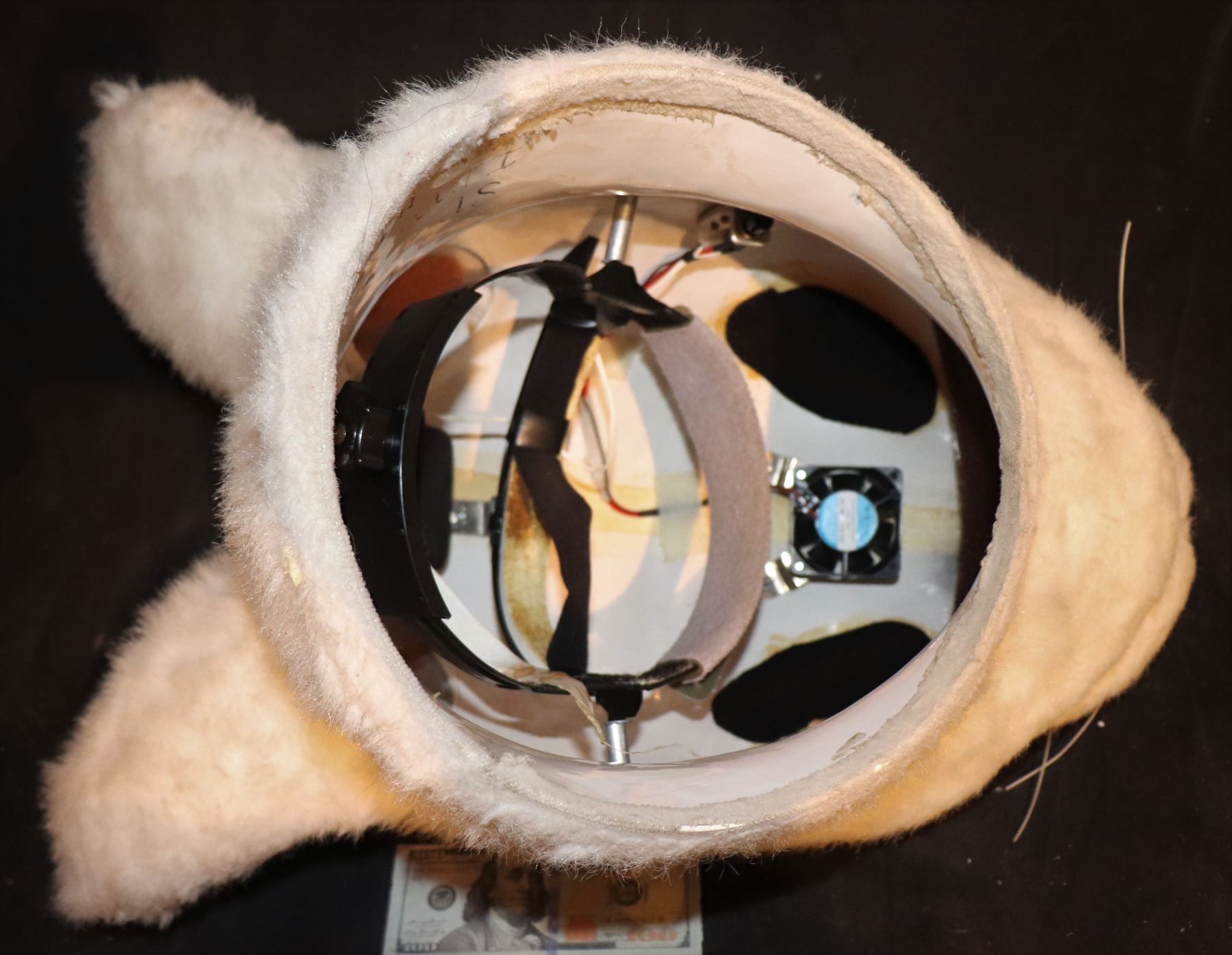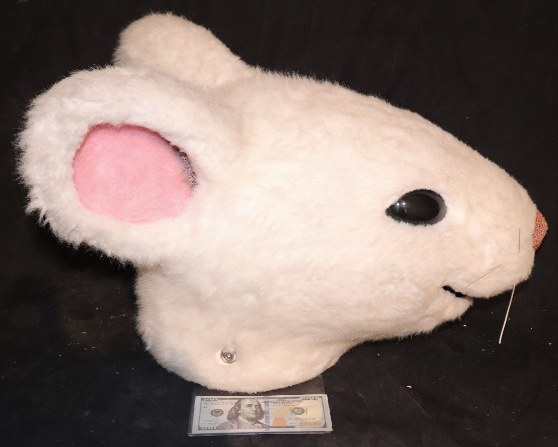 This is the head from the STEWART LITTLE Mascot seen at the Baseball Game, etc. Hard inner shell with fan rig. Needs batteries but works.