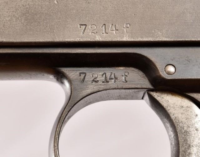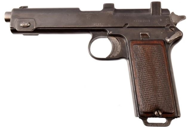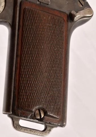 * Steyr 1912 9mm caliber pistol. WWI Australian-Hungarian Military pistol. 1914 Proofed. Approximately 94% of a restored blue. Bore is poor with corrosion in the grooves. Good overall condition.