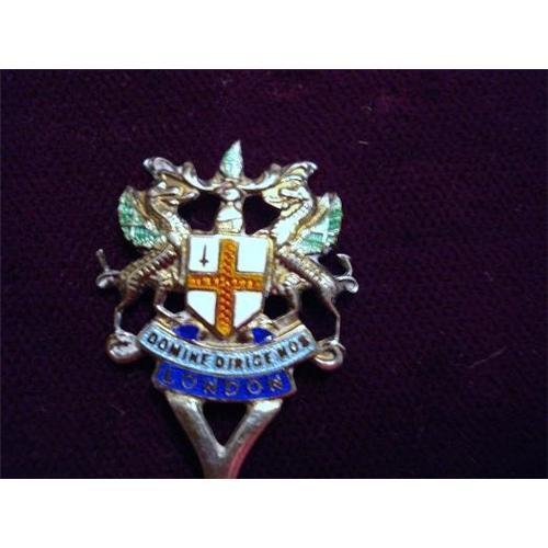 LOVELY VINTAGE STERLING SOUVENIR SPOON DEPICTING GORGEOUS ENAMEL CREST OF LONDON-ENGLAND, HALLMARKED AS BIRMINGHAM SILVER, LION AND SMALL Y, MAKERS MARK S&C Co., In excellent condition - US Buyer to pay 7.00 for shipping plus insurance.THANKS.