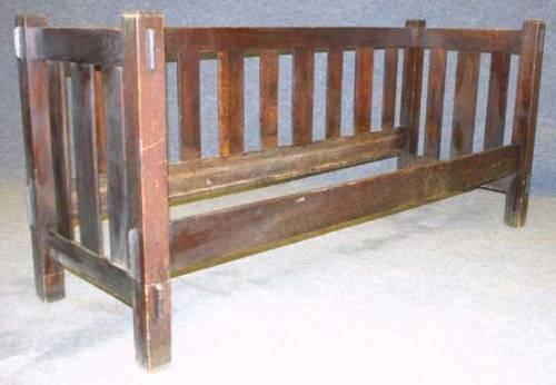Oak Even Arm Settle Attributed to Stickley Brothers width: 76",depth:27" height: 35"