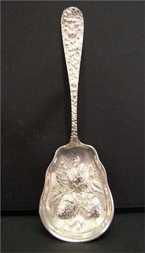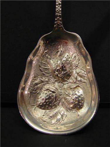 STIEFF ROSE LARGE BERRY SPOON. Three berry bowl. Monogrammed “HGL” on reverse of handle. 8” L