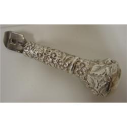 STIEFF STERLING SILVER BOTTLE OPENER. Handle is Sterling silver. Top of handle is monogrammed illegibly. 5.5" L