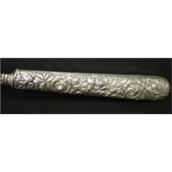 STIEFF STERLING SILVER SERVING FORK IN THE ROSE PATTERN. Marked on handle. 9" L.