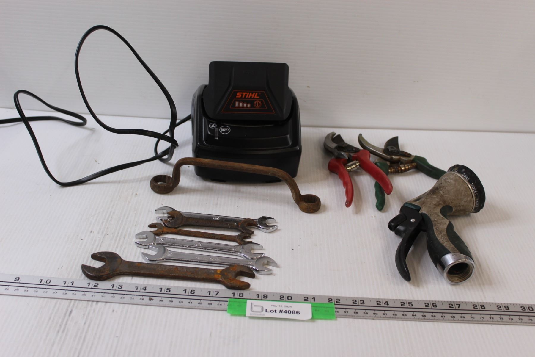 STIHL Battery & Charger - Powers On, as is, (2) Trimmers, Water Nozzle, Various Wrenches