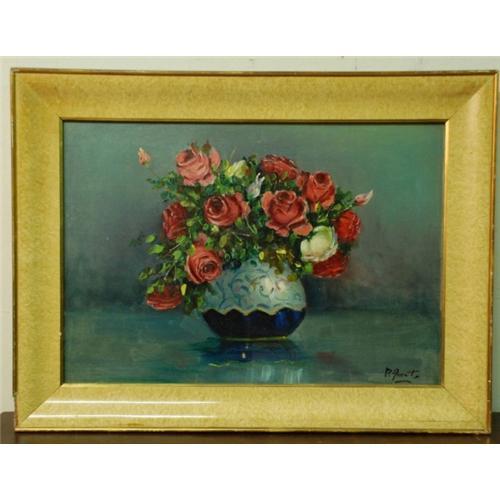 DESCRIPTION: STILL LIFE WITH FLOWERS. The painting in question is a fantastic example of still life, which perfectly exemplifies the value that has been given to these compositions over the centuries. It's perfectly organized in the spaces and colours, with the dark background illuminated by flowers, represented by a triumph of colours and shapes, rounded and foamy, baroque and fleshy. The feeling that the picture creates is of extraordinary strength and sensuality, according to the type of flowers chosen by the author. The brushstrokes are vigorous and decisive.