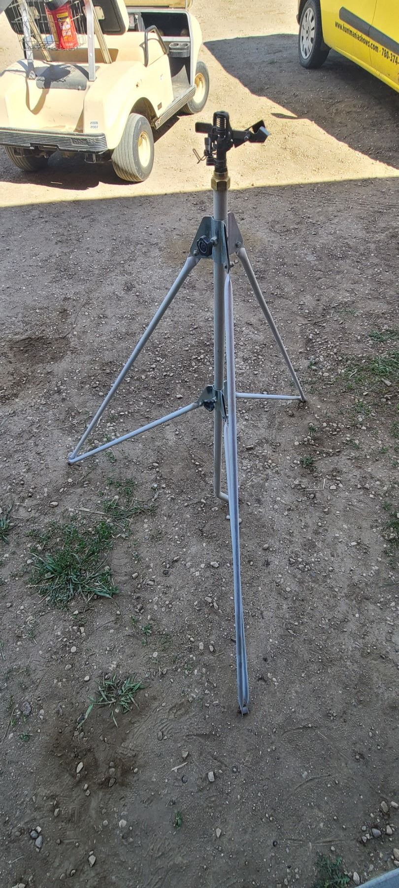STILTED LAWN SPRINKLER & ASSORT. YARD TOOLS